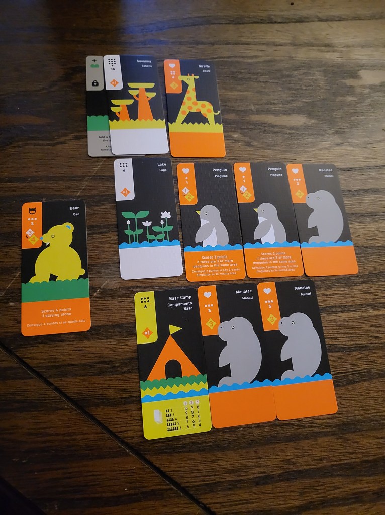 Besides the animal and area constraints, you get to decide where everything goes and the best way to organize it all, which is the fun part! There are a lot of interesting decisions when it comes to which cards to keep to maximize points.
