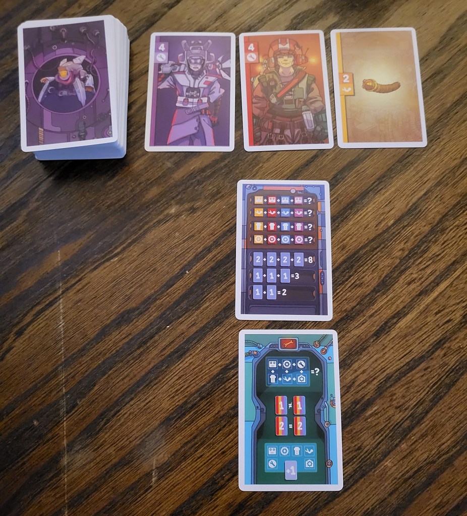 I got four decks which means up to four people can play, but I do wish the four decks had unique and variable constitutions and weren’t just different colors. Also, the workshop areas definitely seem to be more powerful in terms of scoring points (or at least easier to score more points in) than the storage area unless you can play a lot of cards in one storage area, so some decisions are pretty no-brainer-esque because of that. As with any card game, there is also quite a bit of luck involved based on the cards you draw, but having open information in the display for the last two turns of a round helps. Additionally, the scoring is pretty confusing initially; after a few games, it makes sense, but those first few games were a bit of a stab in the dark in terms of figuring out which cards to play where and when to maximize points. There is also a rule where if you can’t legally place a card you have to select one of your four labs to decommission essentially removing it from the round. I found this weird, though, because you only score two of your four total areas each round, so decommissioning one isn’t really that detrimental usually. Or at least it hasn’t been an issue for me yet.