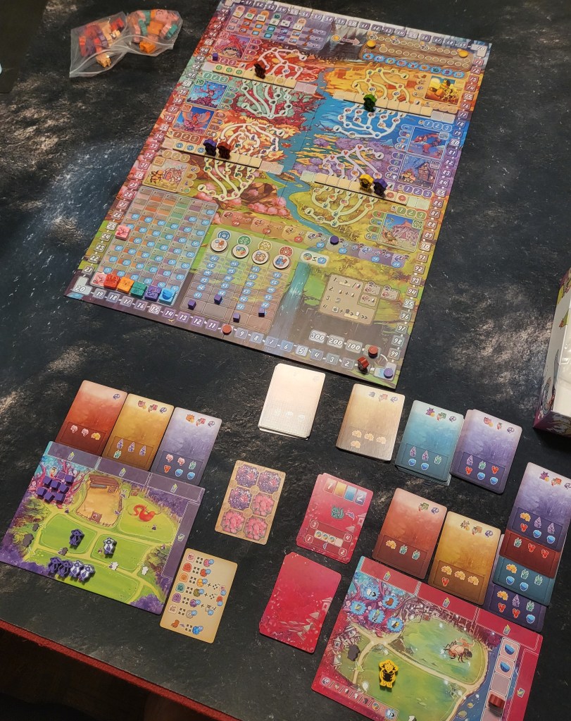 Wowee, this game is colorful! I was initially concerned the board would be too bright and too busy and would detract from game play, but it doesn’t; it’s wonderful.