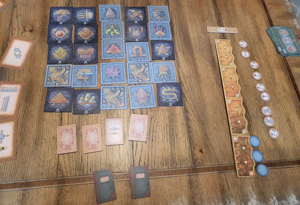 I was pleasantly surprised by this game! It’s not very thematic, but the beautiful artwork on the tiles helps make it a little less abstract. We find it to be a really cool puzzle overall. In my opinion, it works well solo and with two players. They’re both fun but feel different in terms of the satisfaction of collaborating vs. solving the puzzle yourself. For the two-player game, I honestly don’t know if players are supposed to communicate or not, but we found it more fun that way, as it gave us the chance to discuss, strategize, and maximize our turns. That said, I cannot imagine playing with more than two people. I’m sure it’s still enjoyable, but that seems like it could become a “too many cooks in the kitchen” situation very quickly.