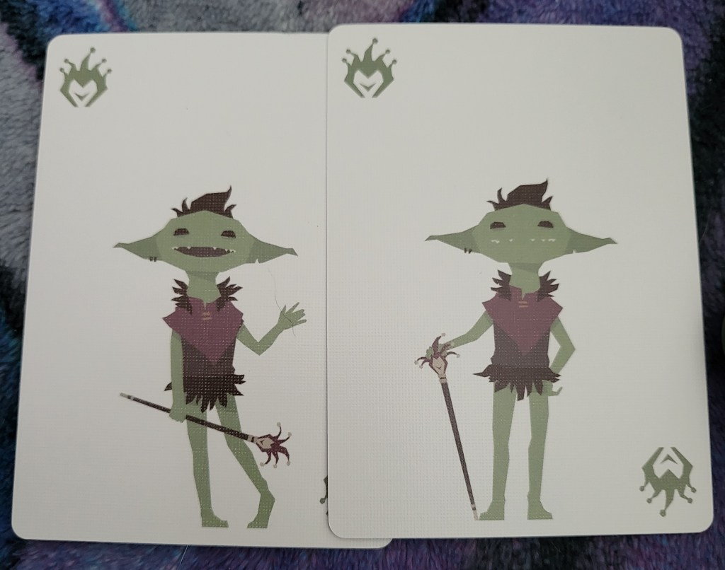 The main goal of the game is to essentially defeat the four jacks, queens, and kings, in that order, with each step up in royalty getting increasingly challenging. In order to defeat them, the player (or players) must discard cards with values that add up to or exceed the strength value of the visible face card. If the player can successfully overcome all twelve face cards, they win! However, if they ever run out of cards in their deck or receive too much damage from the face cards counterattacks, they lose. Each suit also has abilities that can be useful in drawing cards, adding strength to attacks, increasing defense, etc., but if the suit of the face card matches the suit of the card played, the effect gets negated.